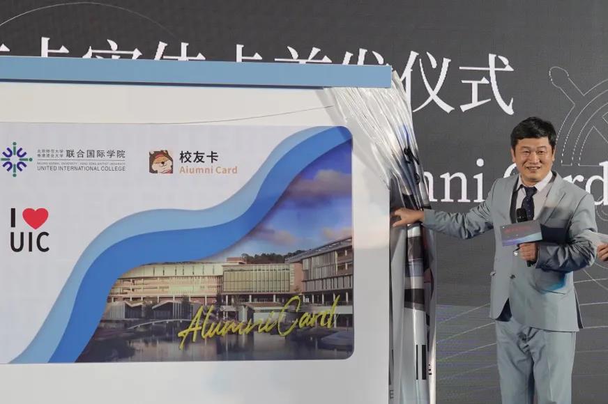 常务副校长陈致教授为校友卡首发仪式揭幕。有了校友卡,全球校友可享受UIC的多元化服务和多项校友福利,如图书馆资源、体育设施等。