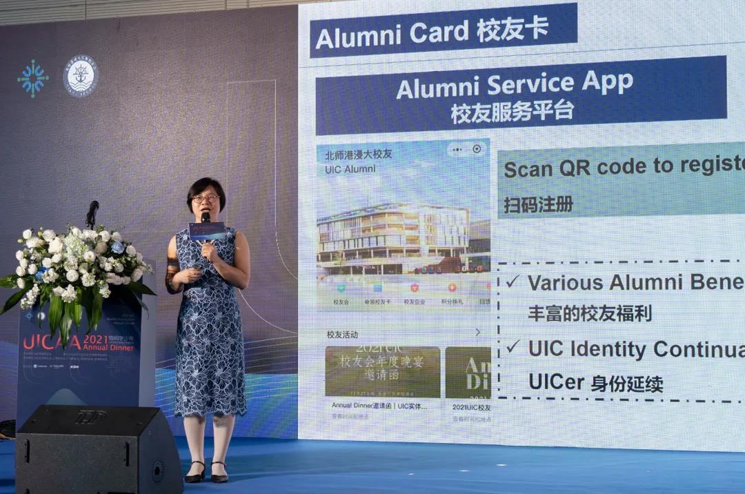 UIC珠海校友会会长杨帆女士在开幕致辞表示,校友会是校友情感的连接,期待UICer毕业后能为社会做出有益的贡献。