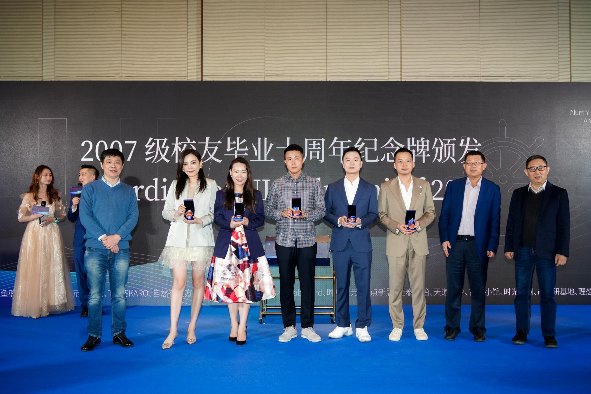 理工科技学部副院长雷波教授(前排右一)为2007级校友颁发毕业十周年纪念牌